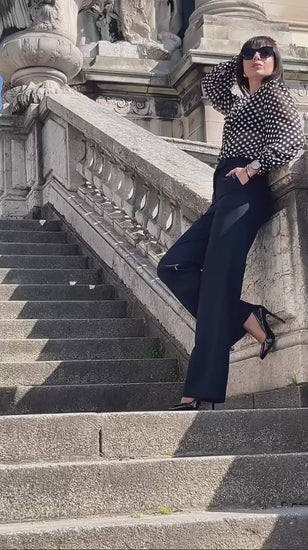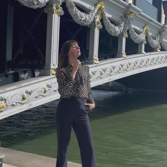 Laissez-vous séduire par cette blouse à petits pois, confectionnée en polyester de grande qualité provenant d’une maison de luxe française. Sa matière douce et fluide offre un confort incomparable au quotidien. Ornée d’un col lavallière élégant et d’une fermeture boutonnée à l’avant, cette pièce incarne le raffinement et la féminité. Intemporelle et polyvalente, elle s’adapte aussi bien aux occasions habillées qu’aux moments décontractés, tout en apportant une touche de chic sophistiqué à votre style.