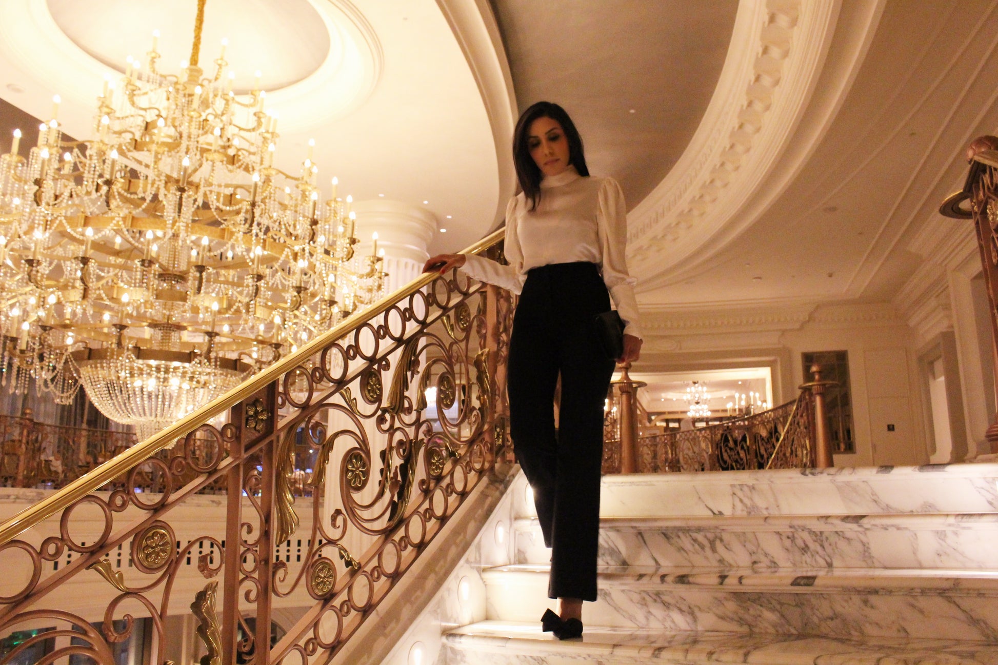 Cette blouse en soie incarne le chic intemporel avec une coupe semi-ajustée et un col montant subtilement orné de plis drapés horizontaux. Les pinces aux épaules ajoutent une touche de structure raffinée, tandis que les manches bouffantes apportent du volume et de la féminité. Au dos, une petite ouverture se ferme délicatement par des boutons pour une touche d’élégance discrète. Les poignets longs, également fermés par des boutons, viennent compléter le style avec finesse.